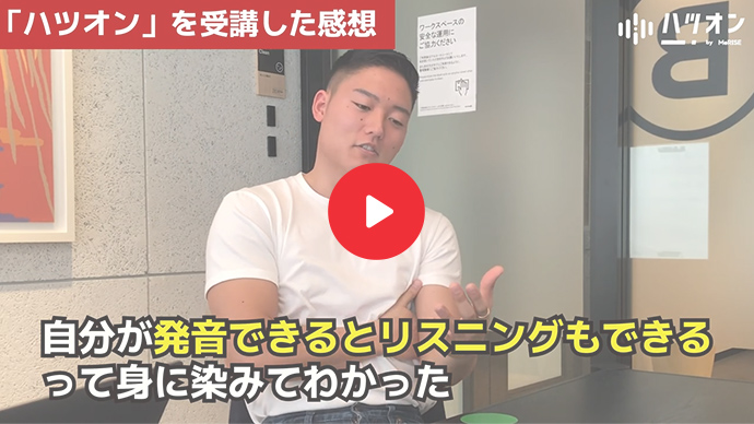 自分の発音とCDの発音の違いがわかるようになりました!以前CD聞いているときはただ音声を真似するだけだったんですが、ハツオンを受講してから、自分の発する音と音声の違いを意識し、何が正しい発音かが判断できるようになりました! -
